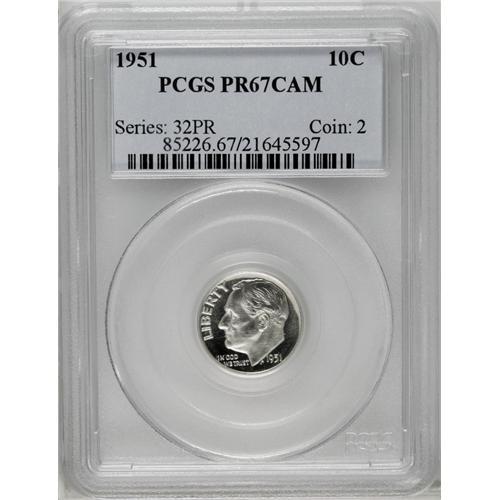1951 10C PR67 Cameo PCGS; and a 1954 PR67 Cameo, both 1951[10C] PR67 Cameo PCGS;