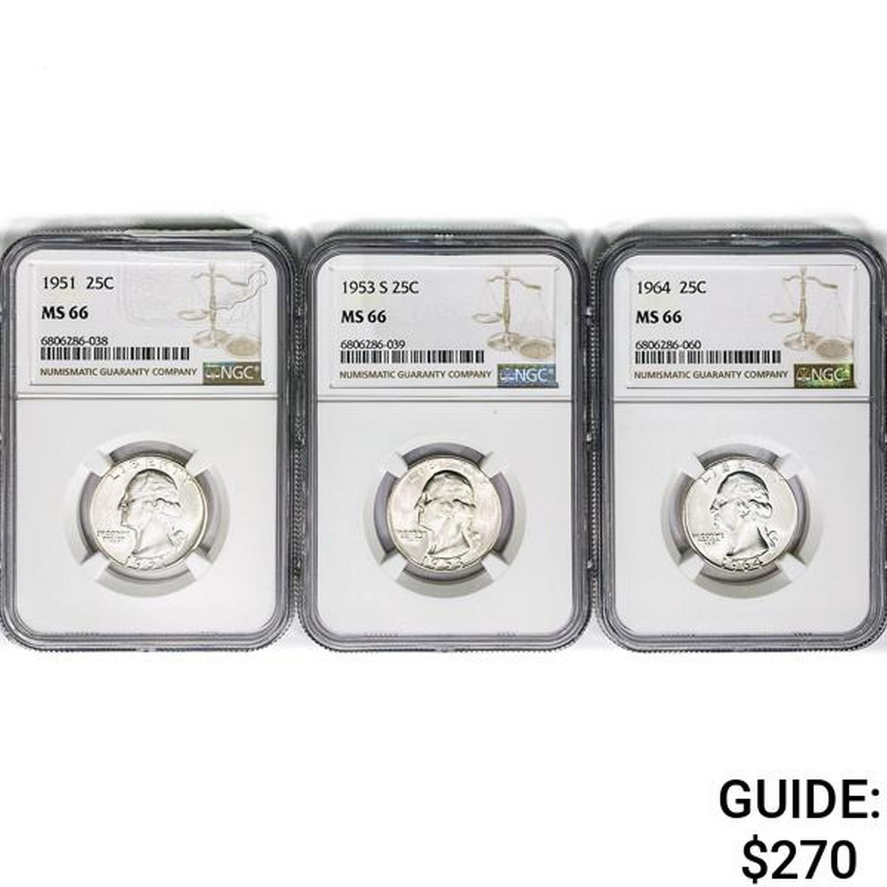 1951-1964 [3] Washington Silver Quarter NGC MS66