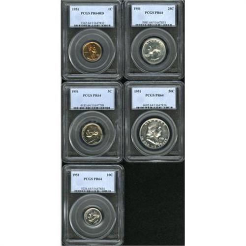 <B>1951 SET Proof Set MS64 PCGS. </B></I><BR><BR><B>Coin Engraver:</B> Victor D. Brenner<BR><BR><b>Shipping:</b> Coins & Currency (<a target="_blank" href="http://www.heritageauctions.com/common/shipping.php">view shipping information</a>)