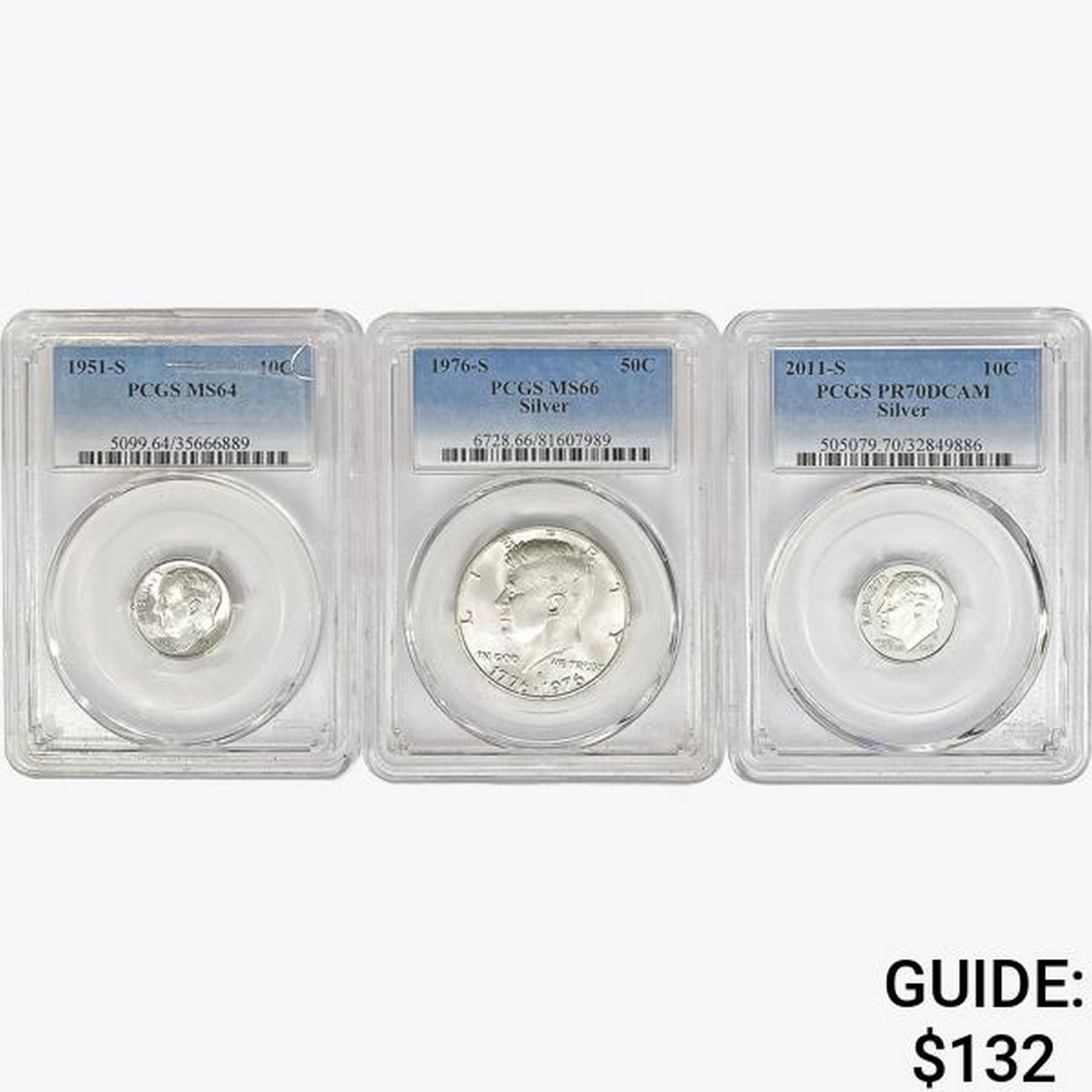 1951-2011 [3] US Varied Silver Coinage PCGS MS/PR