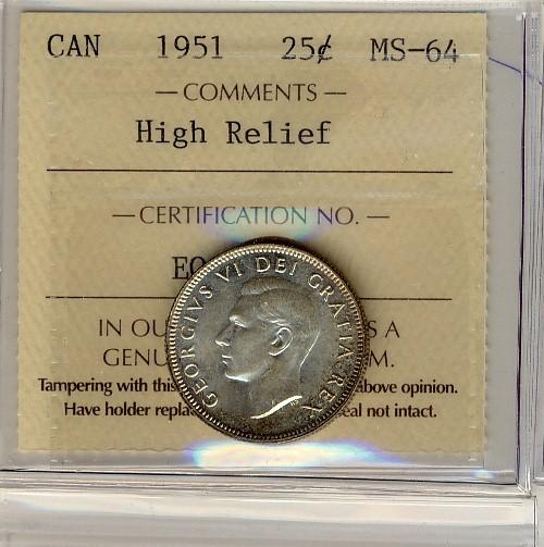 1951 25¢ High Relief ICCS MS64