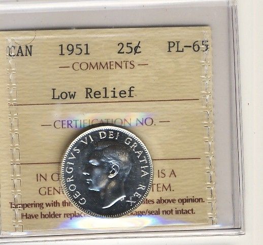 1951 25¢ Low Relief ICCS PL65. Popular variety.