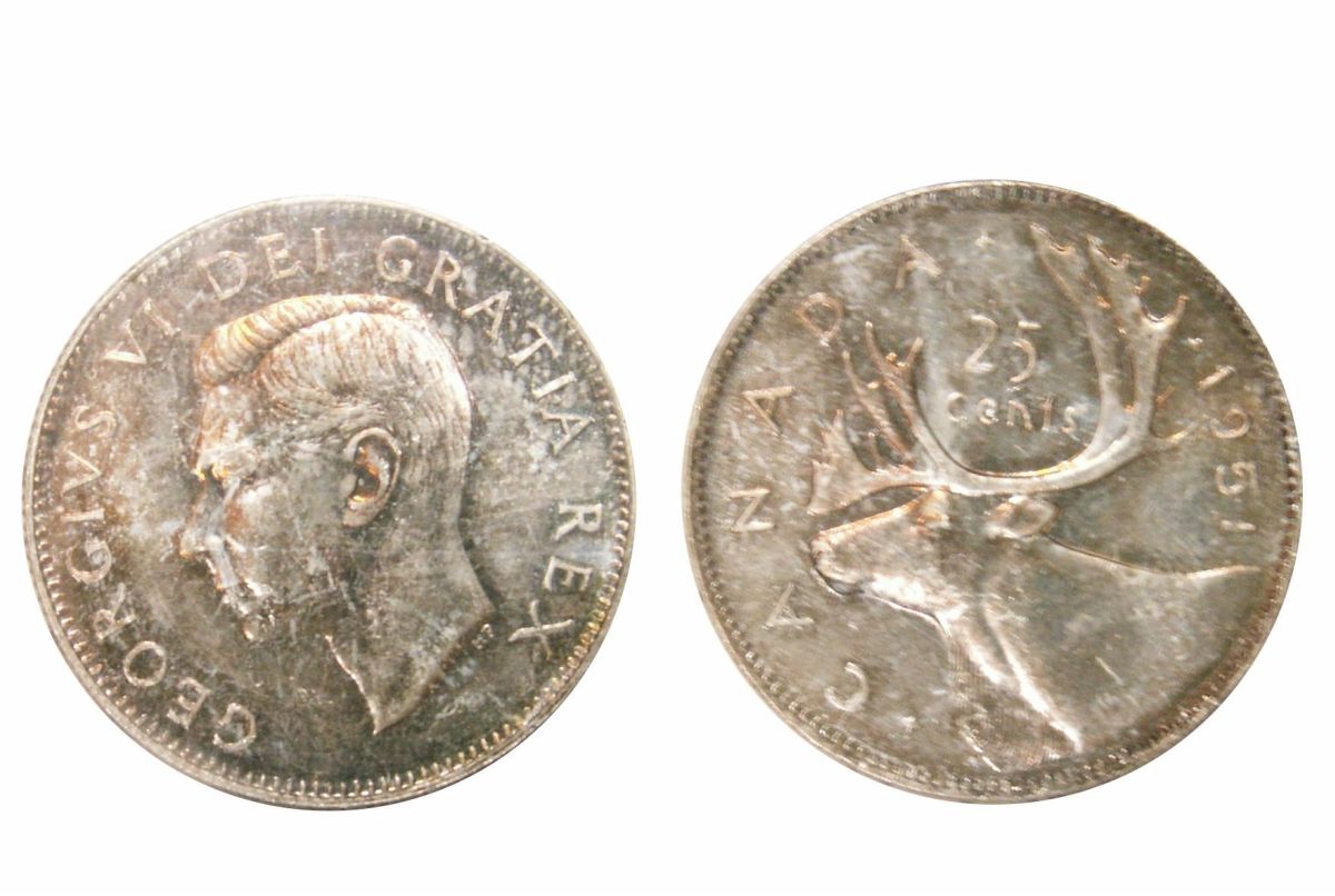 1951 25¢ Low relief ICCS MS63. Top 10 graded by ICCS, only one example graded higher. Scarce in Mint state.