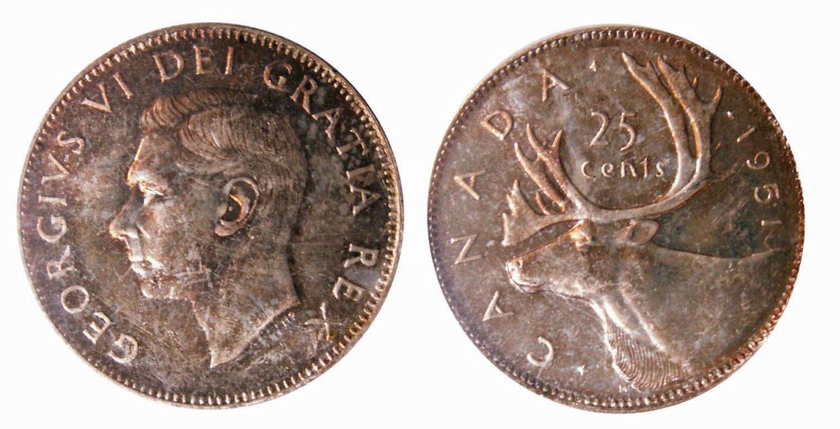 1951 25¢ Low relief ICCS MS63. Top 10 graded by ICCS, only one example graded higher. Scarce in Mint state.