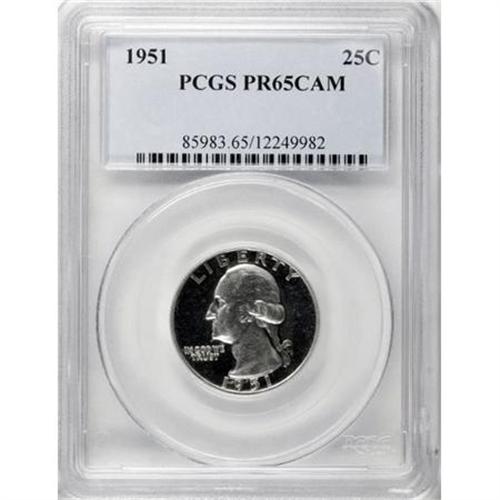 <B>1951 25C PR65 Cameo PCGS.</B></I> . PCGS Population (28/84). NGC Census: (36/169). Numismedia Wsl. Price for NGC/PCGS coin in PR65: $150. (#85983)<BR><BR><b>Shipping:</b> Coins & Currency (<a target="_blank" href="http://www.heritageauctions.com/common/shipping.php">view shipping information</a>)