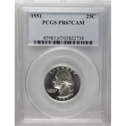 1951 25C PR67 Cameo PCGS. The snow-white devices have