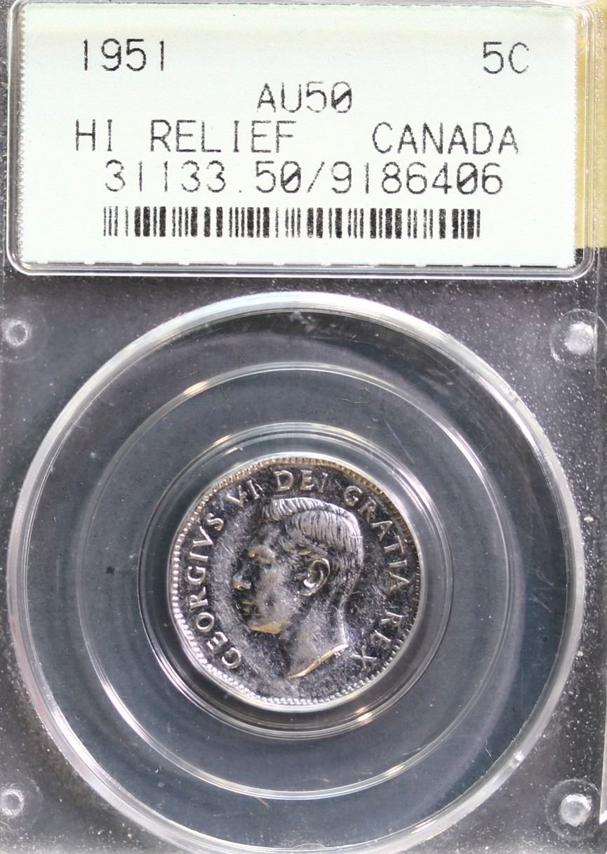 1951 5¢ "High Relief" About Uncirculated-50.