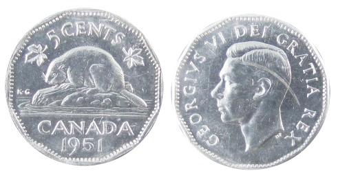 1951 5¢ High Relief ICCS MS60. Reflective surfaces. Rare grade. Designated with scratch.