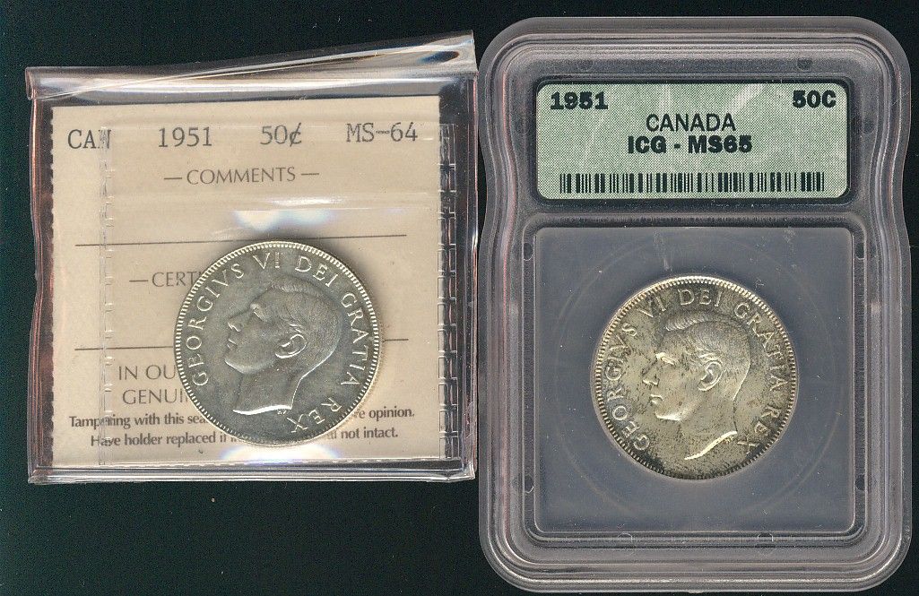 1951 50¢ ICCS MS64 & ICG MS65. Lot of 2 coins.