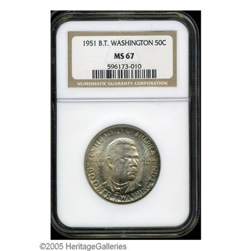 1951 50C Booker T. Washington MS67 NGC. Dappled peach, 1951[50C] Booker T. Washington MS67 NGC.