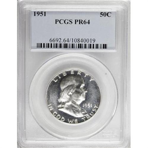 <B>1951 50C PR64 PCGS.</B></I> PCGS Population (928/1300). NGC Census: (373/975). Mintage: 57,500. Numismedia Wsl. Price for NGC/PCGS coin in PR64: $275. (#6692)<BR><BR><B>Coin Engraver:</B> John R. Sinnock<BR><BR><b>Shipping:</b> Coins & Currency (<a target="_blank" href="http://www.heritageauctions.com/common/shipping.php">view shipping information</a>\)
