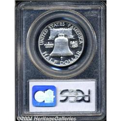 <B>1951<50C> PR65 Deep Cameo PCGS.</B></I> An untoned Gem with pleasing white-on-black contrast and exquisitely preserved surfaces. One of the lowest proof productions of the series, and very elusive with Deep Cameo contrast. Population: 8 in 65 Deep Cameo, 12 finer (7/04). <BR><BR><B>Important notice:</B> Heritage usually auctions material at the rate of 200-250 lots per hour. On some occasions eBay Live bid software or the Internet may not be able to keep up with the pace of the auction. We recommend placing a realistic absentee bid now as insurance to avoid disappointment. Occasionally the auctioneer may eliminate or reject an eBay Live bid, and the auctioneer may also reopen a lot after the close of the eBay live bidding (usually because we missed an audience bid), and may reject your bid even if it shows you as the winning bidder. By bidding via eBay Live, you agree that Heritage may award the lot to another bidder at its sole discretion under the circumstances described above or any other reasonable circumstances. Since eBay bids are not shown to us until we open the lot on the floor, we treat those bids just like floor bids. In most cases the floor responds before the eBay bid is presented to us, due to Internet lag time, so for consistency we have made it a policy that floor bids are always considered first over tie eBay live bids. Also please note that all Heritage lots purchased through eBay Live carry a 20% Buyer's Premium. Please make sure you read the Terms and Conditions before you bid. </span></font></tr></table></td></tr></table>