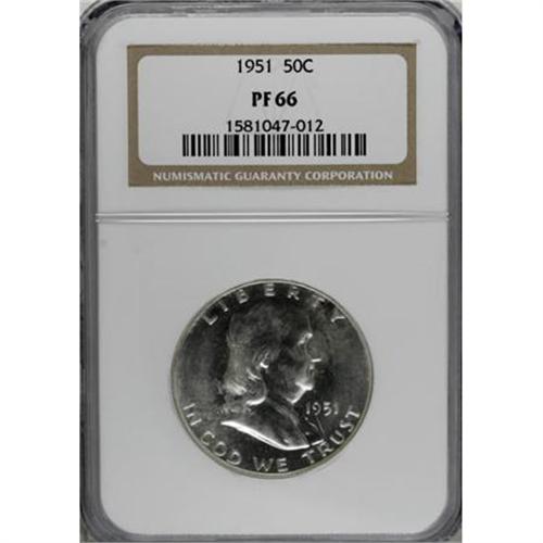 <B>1951 50C PR66 NGC.</B></I> NGC Census: (385/147). PCGS Population (407/89). Mintage: 57,500. Numismedia Wsl. Price for NGC/PCGS coin in PR66: $340. (#6692)<BR><BR><B>Coin Engraver:</B> John R. Sinnock<BR><BR><b>Shipping:</b> Coins & Currency (<a target="_blank" href="http://www.heritageauctions.com/common/shipping.php">view shipping information</a>)