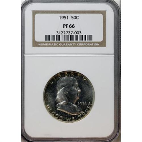 <B>1951 50C PR66 NGC.</B></I> . NGC Census: (394/150). PCGS Population (411/88). Mintage: 57,500. Numismedia Wsl. Price for NGC/PCGS coin in PR66: $355. (#6692)<BR><BR><B>Coin Engraver:</B> John R. Sinnock<BR><BR><b>Shipping:</b> Coins & Currency (<a target="_blank" href="http://www.heritageauctions.com/common/shipping.php">view shipping information</a>)