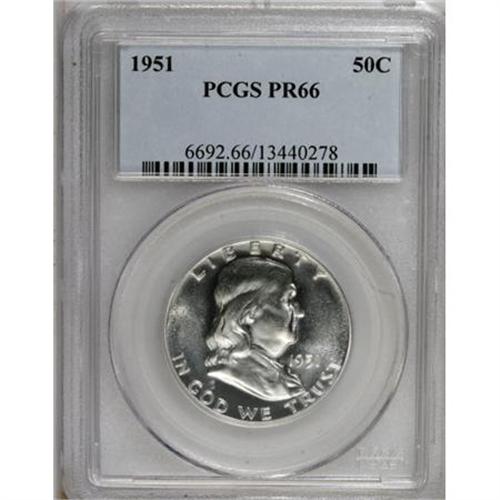 <B>1951 50C PR66 PCGS.</B></I> PCGS Population (407/89). NGC Census: (385/147). Mintage: 57,500. Numismedia Wsl. Price for NGC/PCGS coin in PR66: $340. (#6692)<BR><BR><B>Coin Engraver:</B> John R. Sinnock<BR><BR><b>Shipping:</b> Coins & Currency (<a target="_blank" href="http://www.heritageauctions.com/common/shipping.php">view shipping information</a>)