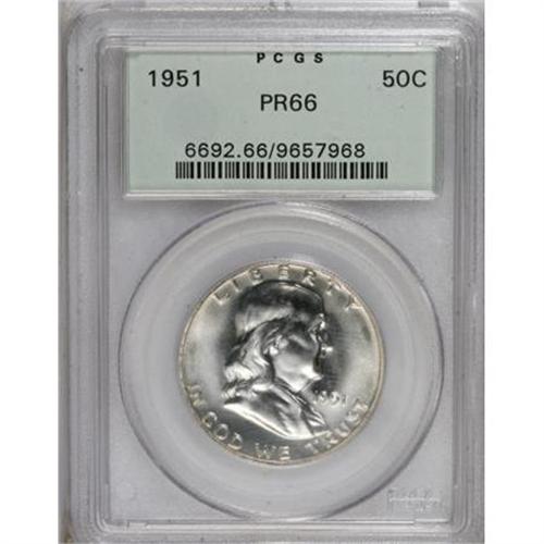 <B>1951 50C PR66 PCGS.</B></I> PCGS Population (408/89). NGC Census: (391/148). Mintage: 57,500. Numismedia Wsl. Price for NGC/PCGS coin in PR66: $340. (#6692)<BR><BR><B>Coin Engraver:</B> John R. Sinnock<BR><BR><b>Shipping:</b> Coins & Currency (<a target="_blank" href="http://www.heritageauctions.com/common/shipping.php">view shipping information</a>)