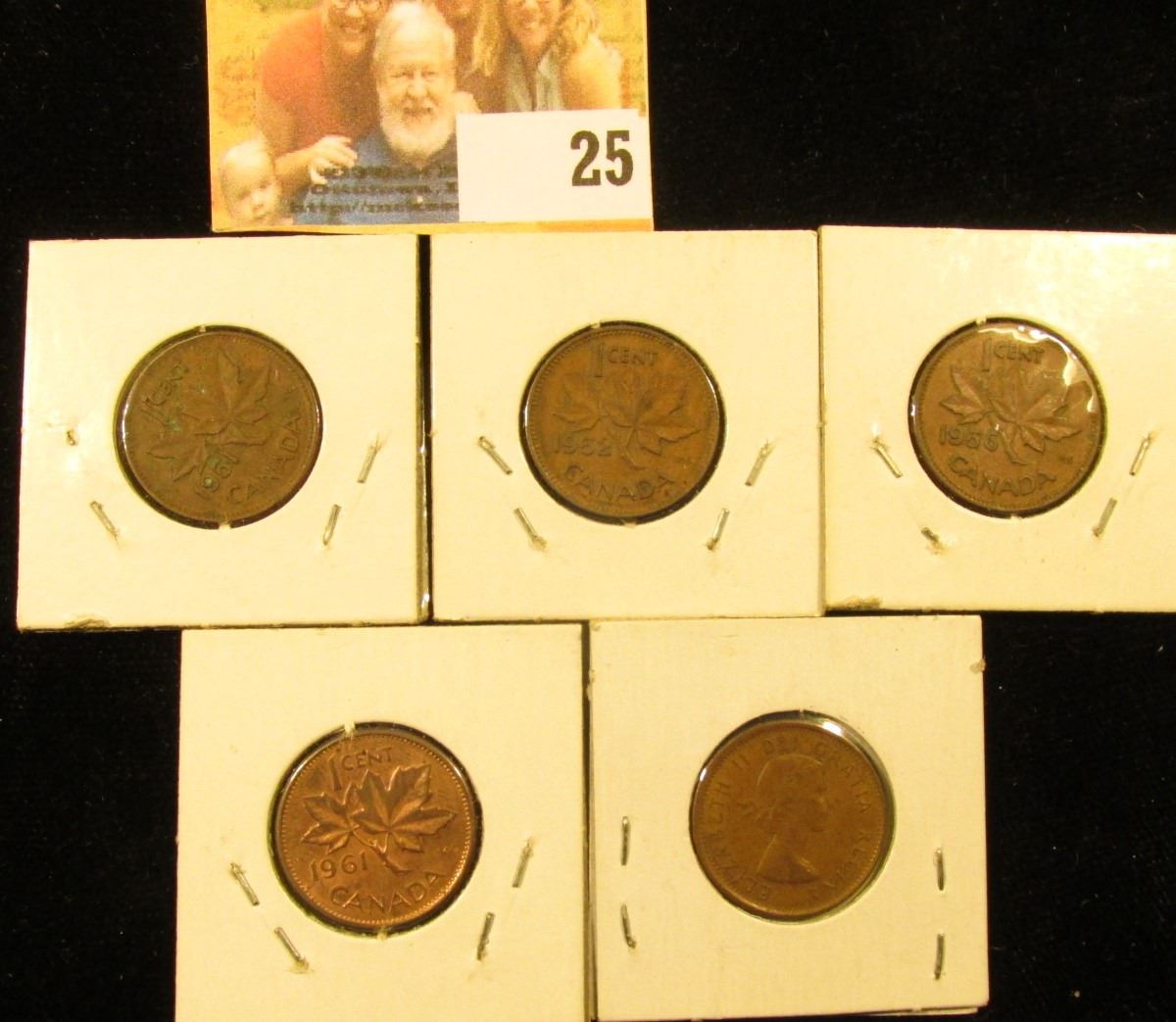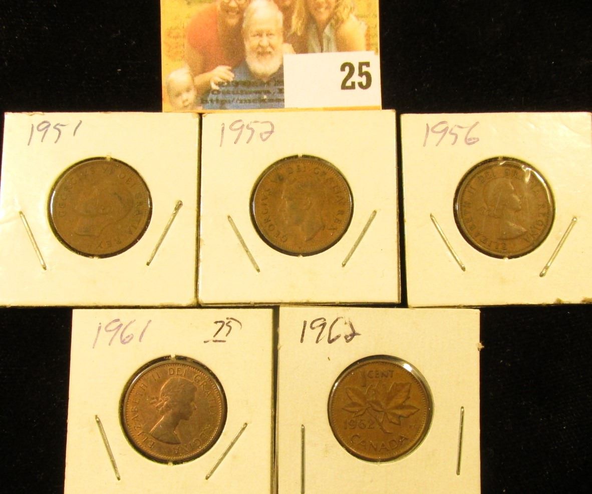 1951, 52, 56, 61, & 62 Circulated Canada Small Cents.