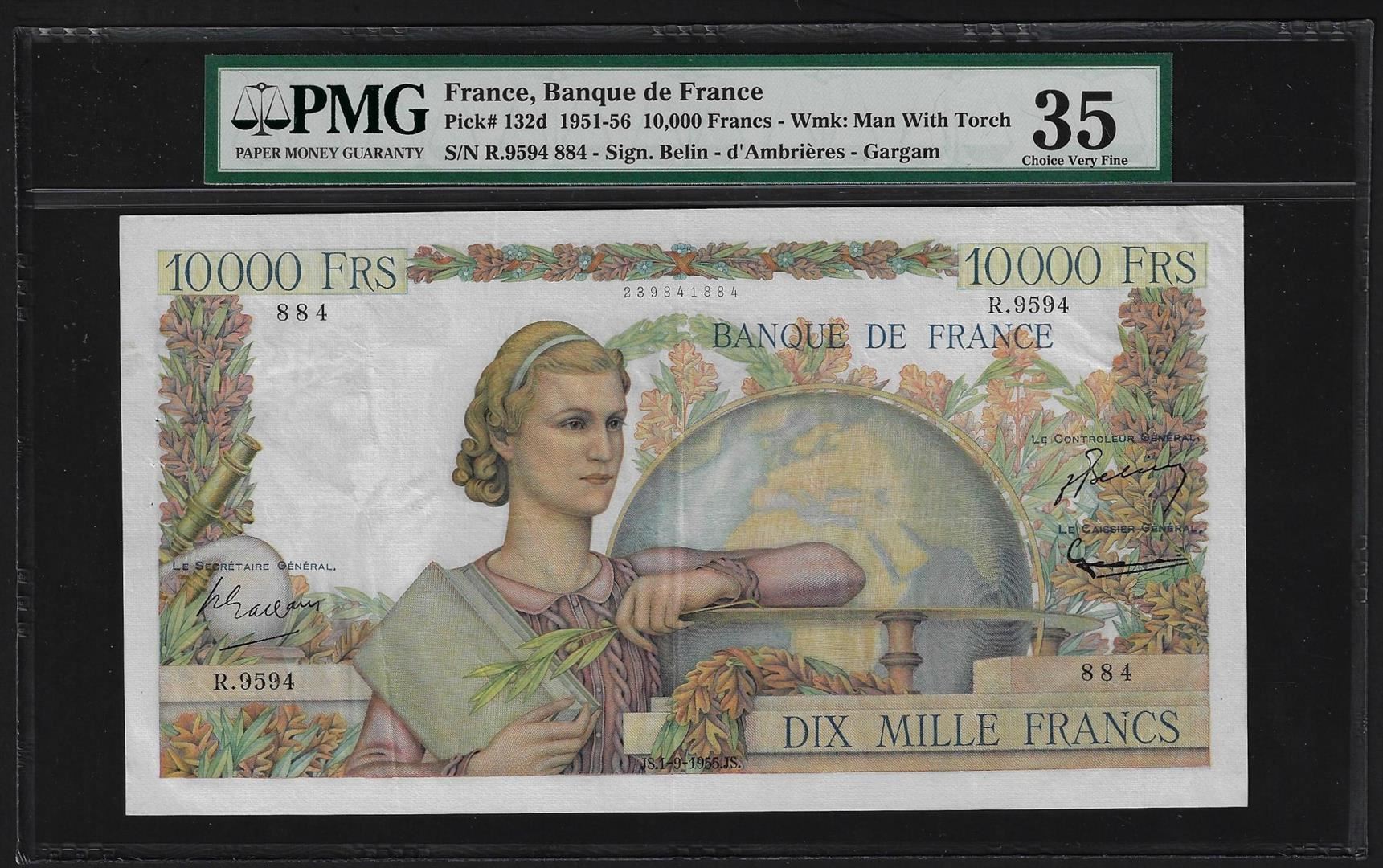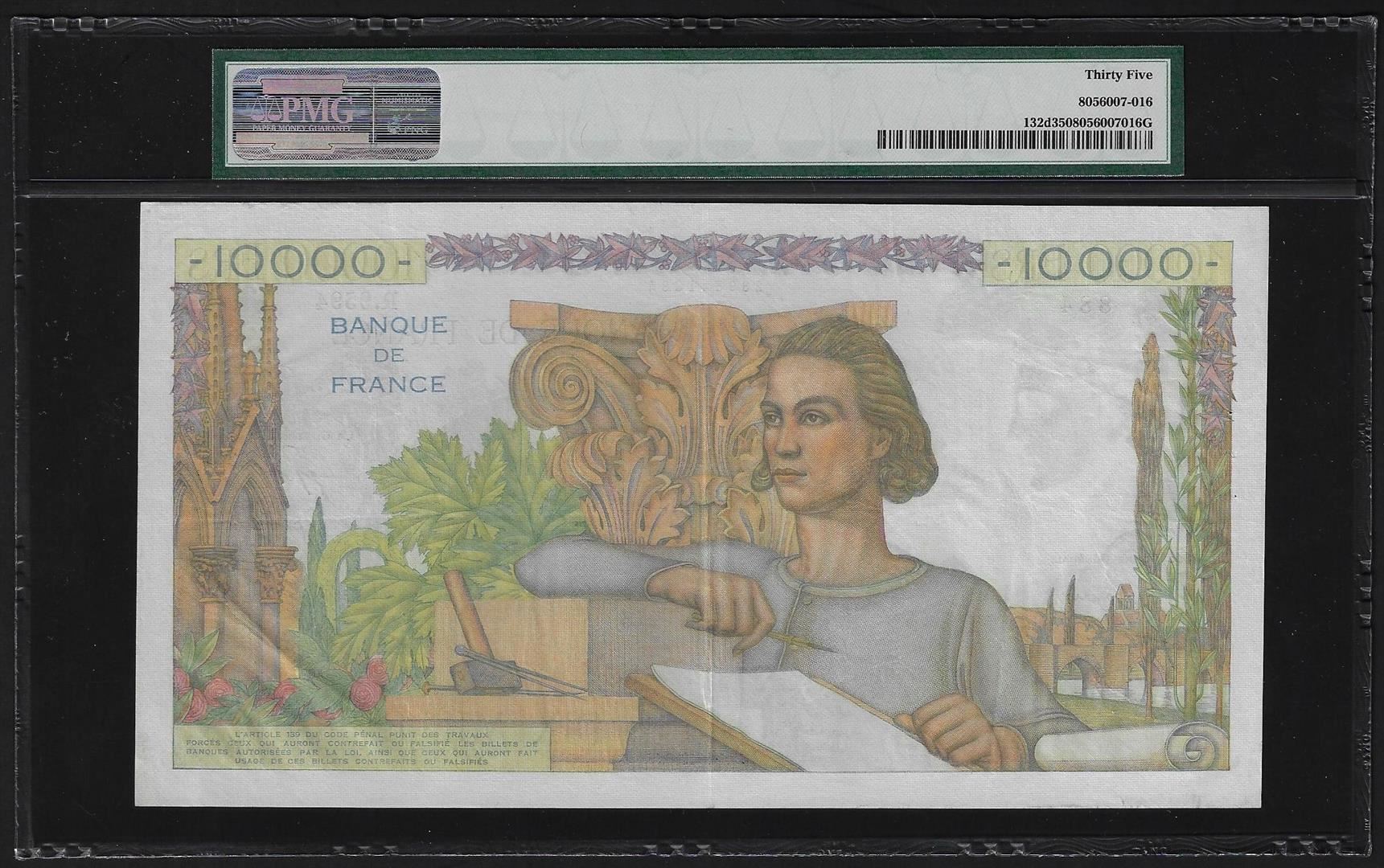 1951-56 France 10,000 Francs Currency Note Pick# 132d PMG Choice Very Fine 35