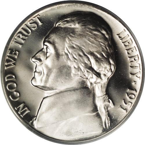 <B>1951<5C> PR66 Deep Cameo PCGS.</B></I> Impeccable, fully brilliant surfaces with a degree of contrast one looks for on later-date S-mint proofs, but almost never sees on the early issues. For identification purposes, a tiny inverted U-shaped lintmark is seen below Jefferson's ear. Population: 2 in 66 Deep Cameo, 5 finer (3/06). <BR><BR><B>Important notice:</B> Heritage usually auctions material at the rate of 200-250 lots per hour. On some occasions eBay Live bid software or the Internet may not be able to keep up with the pace of the auction. We recommend placing a realistic absentee bid now as insurance to avoid disappointment. Occasionally the auctioneer may eliminate or reject an eBay Live bid, and the auctioneer may also reopen a lot after the close of the eBay live bidding (usually because we missed an audience bid), and may reject your bid even if it shows you as the winning bidder. By bidding via eBay Live, you agree that Heritage may award the lot to another bidder at its sole discretion under the circumstances described above or any other reasonable circumstances. Since eBay bids are not shown to us until we open the lot on the floor, we treat those bids just like floor bids. In most cases the floor responds before the eBay bid is presented to us, due to Internet lag time, so for consistency we have made it a policy that floor bids are always considered first over tie eBay live bids. Also please note that all Heritage lots purchased through eBay Live carry a 20% Buyer's Premium. Please make sure you read the Terms and Conditions before you bid. This lot is being auctioned in conjunction with a live floor auction by Heritage Galleries & Auctioneers. All final auction and invoice information will be supplied by Heritage Galleries & Auctioneers, and all other information should be considered preliminary. Lot:1179 <BR><BR><B>Winning Notification and Billing:</B> After the FINAL session in this auction is complete, Heritage will send e-mail and snail mail invoices. This process normally takes several days. All final auction and invoice information will be supplied by Heritage Galleries & Auctioneers, and all other information should be considered preliminary. <BR><BR>This auction will be conducted on a live auction floor and over the Internet through eBay Live. If you choose to place an absentee bid, please take a moment to <font color='#0000ff'><u><a href='http://pages.ebay.com/liveauctions/help/before/laabsentee.html'>learn how eBay Live absentee bidding works</a></u></font><font color='#000000'>