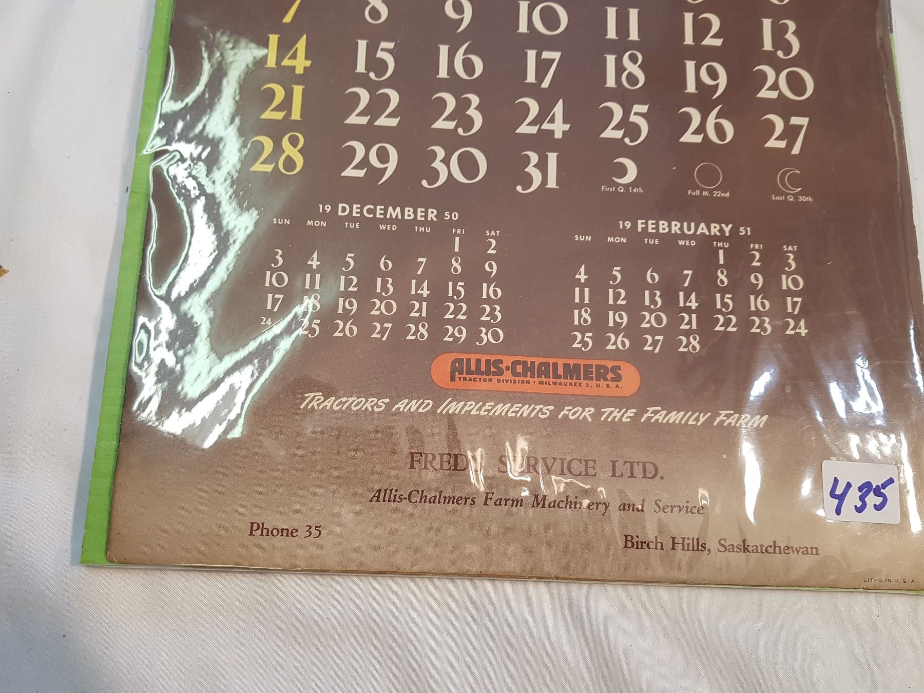 1951 Allis Chalmers Calendar -Birch Hills