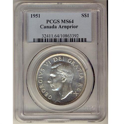 1951 Anrprior $1 PCGS MS-64 The coin is fully struck and has full lustre. Scarce