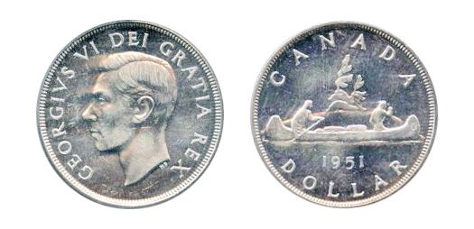1951, Arnprior. PCGS graded Mint State-64. Another fully brilliant dollar.