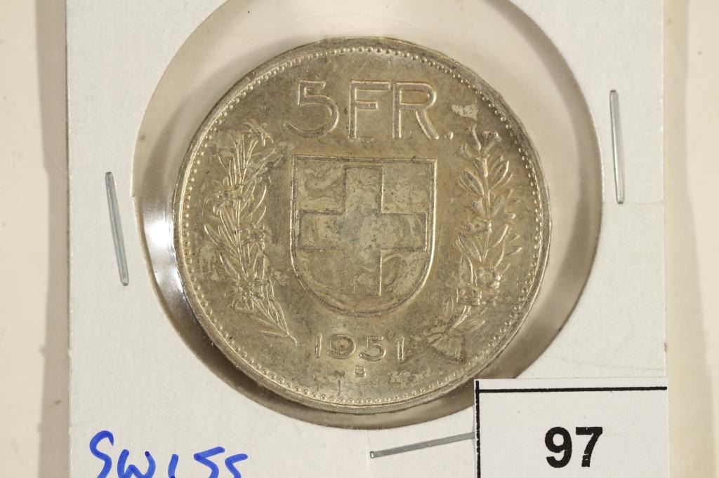 1951-B SWISS SILVER 5 FRANC .4027 OZ. ASW