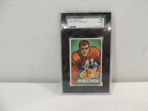 1951 BOWMAN #140 FOOTBALL CARD LEO NOMELLINI. GRADED SGCCARD.COM VG/EX 4. AS SHOWN. VIEW PICTURE FOR DETAIL.