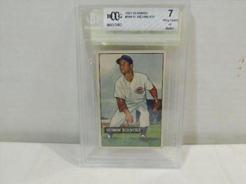 1951 BOWMAN #144 GRADED BASEBALL CARD HERMAN WEHMEIER. GRADED BCCG VERY GOOD 7. AS SHOWN. VIEW PICTURE FOR DETAIL.