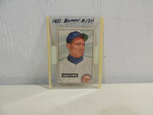 1951 BOWMAN #174 BASEBALL CARD MICKEY OWEN. AS SHOWN. VIEW PICTURE FOR DETAIL.