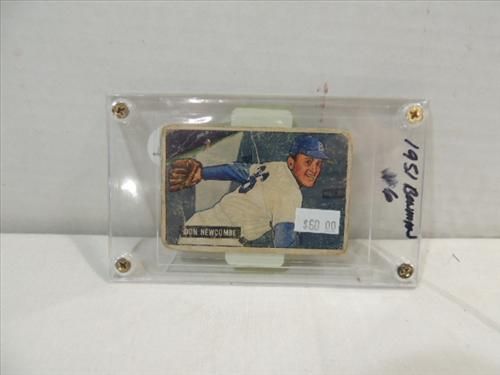 1951 BOWMAN #6 BASEBALL PLAYER CARD DON NEWCOMBE. VERTICLE CREASE. A S SHOWN. VIEW PICTURE FOR DETAIL.