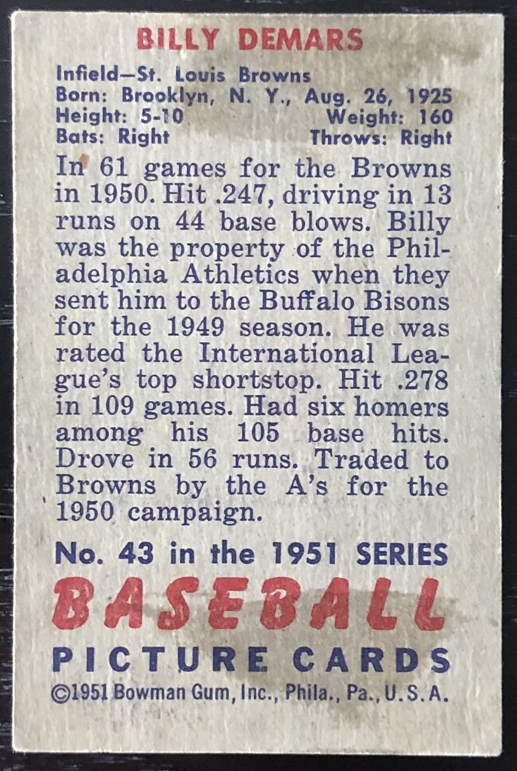 Card#43 vintage, MLB, baseball