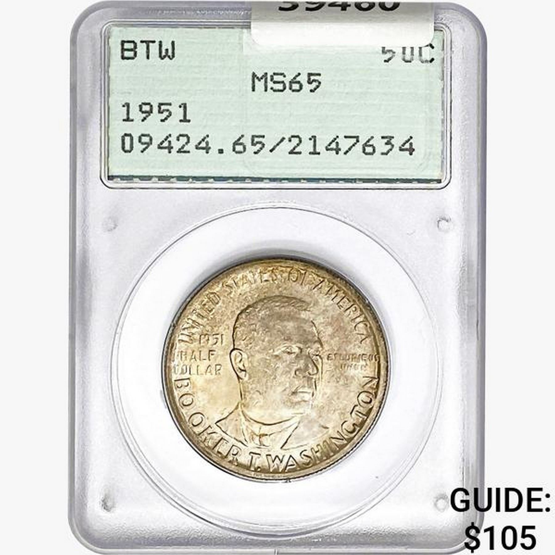 1951 Booker T Half Dollar PCGS MS65