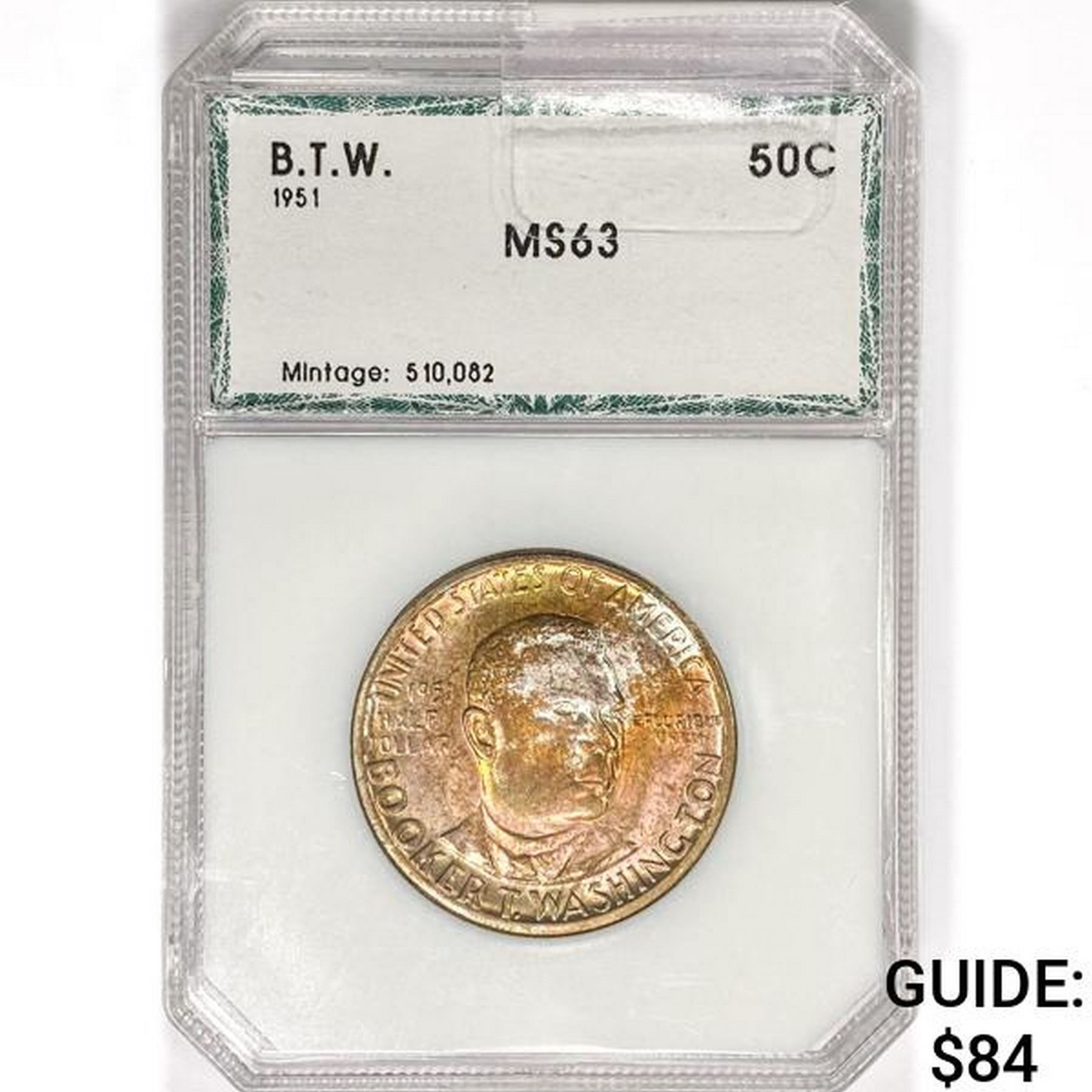 1951 Booker T Half Dollar PCI MS63