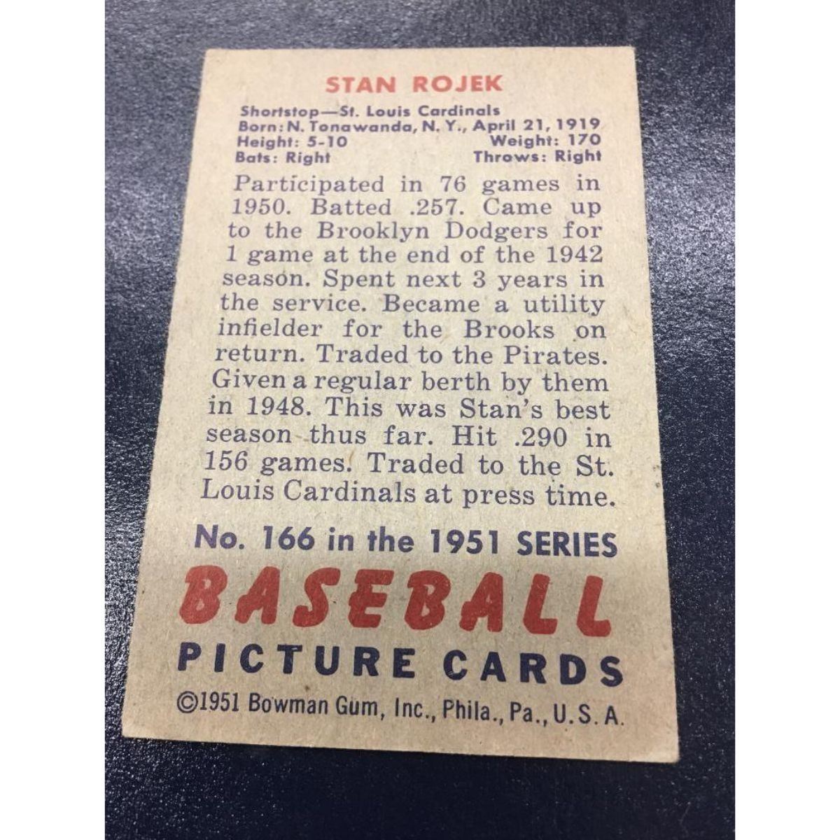 A 1951 Bowman 166 Stan Rojek Baseball Card. Great Pitcher Card From The 1950's. View Photos For Further Details.