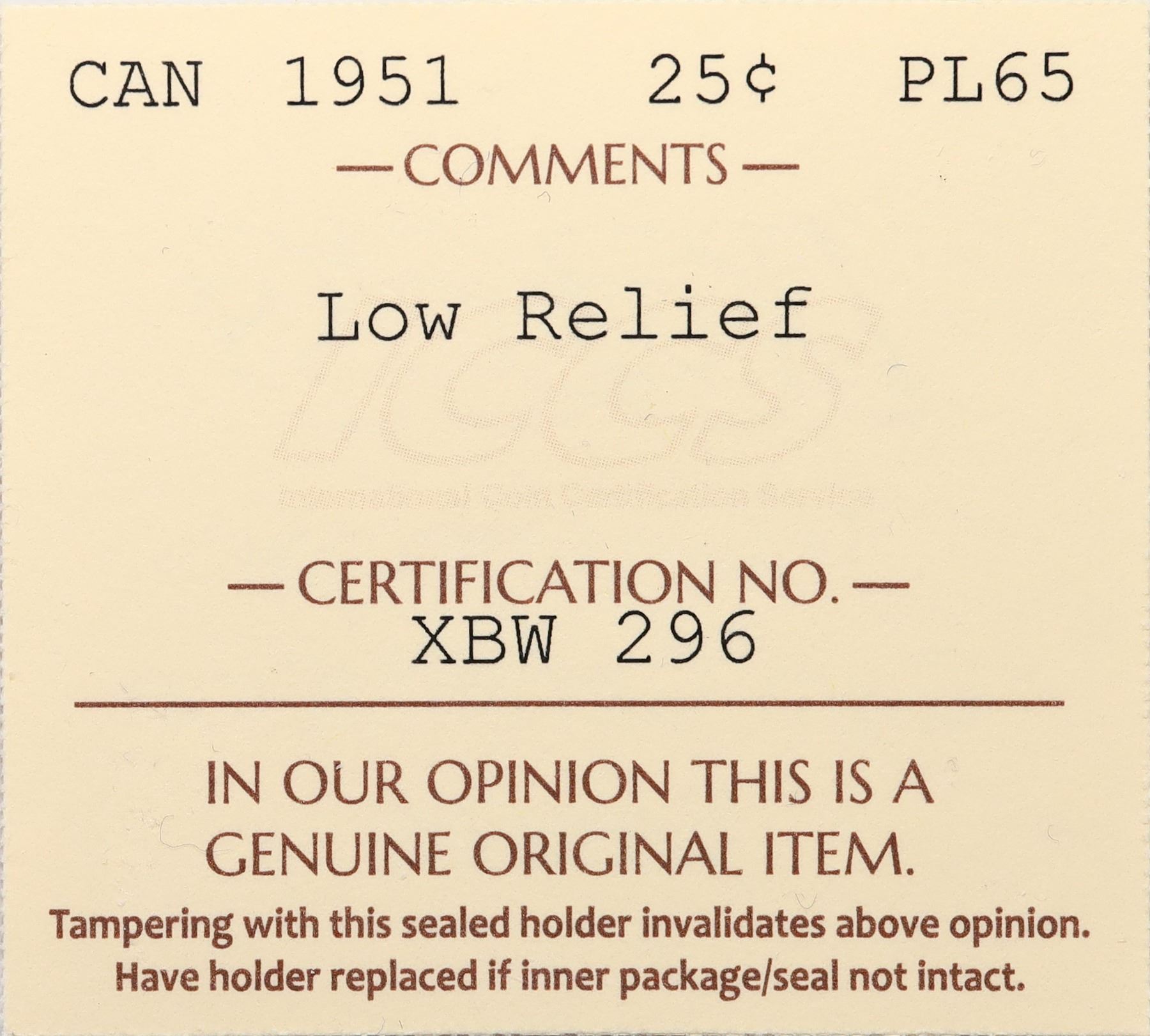 1951 Canada 25¢ ICCS PL-65 Low Relief