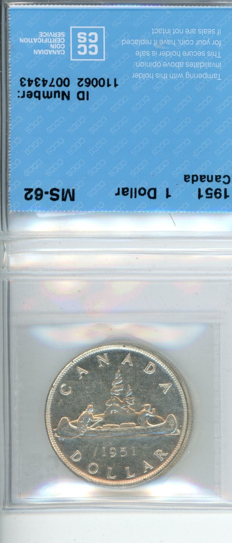 1951 Canadian $1 Coin MS-62 CCCS Graded