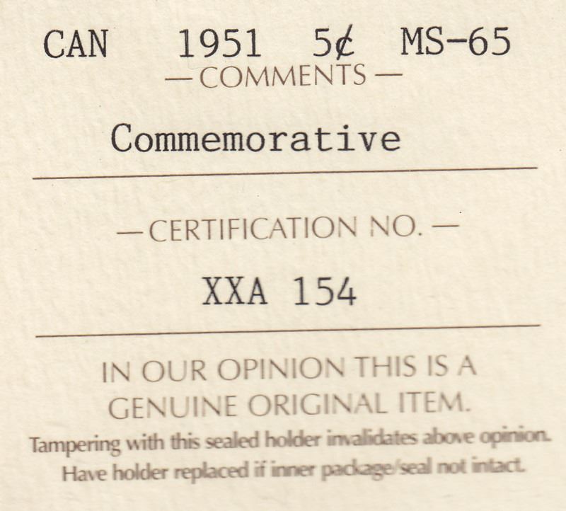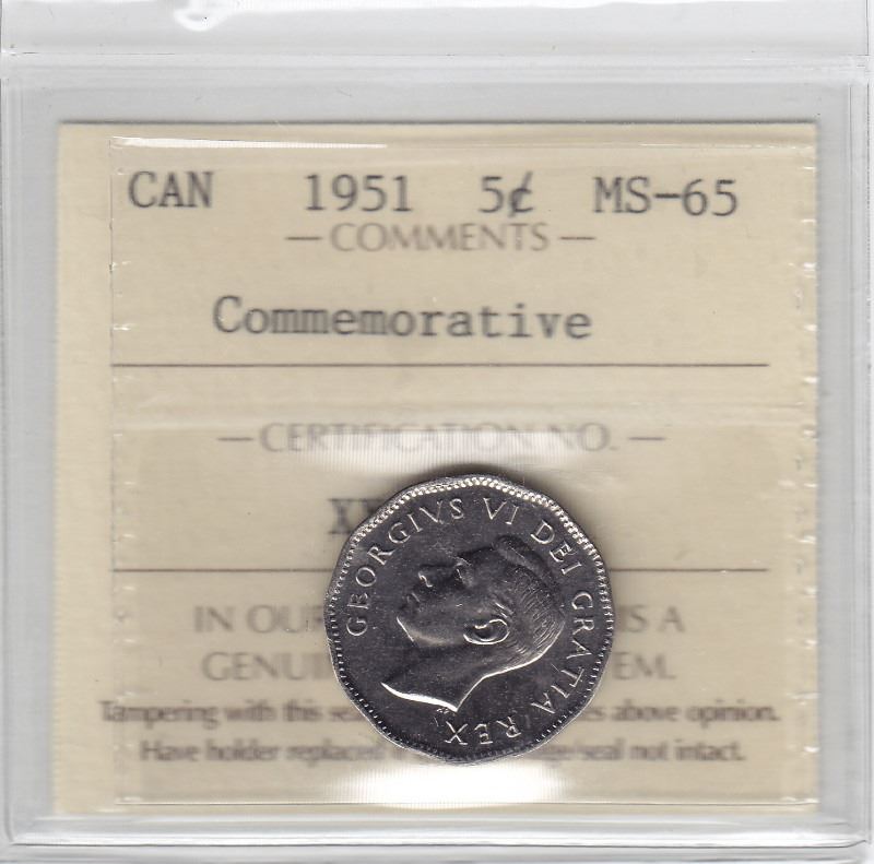 1951 Canadian Commemorative 5-Cent Nickel Coin - Graded MS-65 By ICCS!!! (XXA 154)