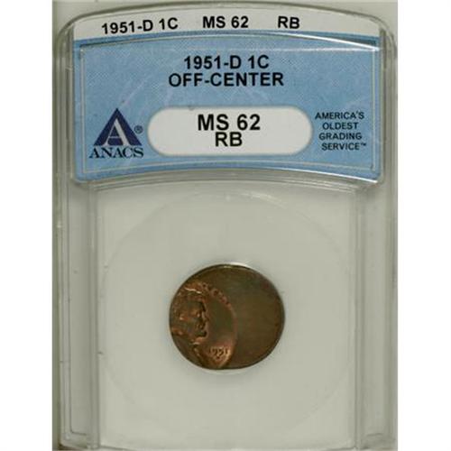 <B>1951-D 1C Lincoln Cent--Off Center--MS62 Red and Brown ANACS.</B></I><BR><BR><B>Coin Engraver:</B> Victor D. Brenner<BR><BR><b>Shipping:</b> Coins & Currency (<a target="_blank" href="http://www.heritageauctions.com/common/shipping.php">view shipping information</a>)