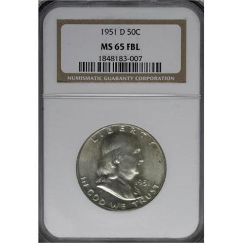 <B>1951-D 50C MS65 Full Bell Lines NGC.</B></I> NGC Census: (211/10). PCGS Population (530/62). Numismedia Wsl. Price for NGC/PCGS coin in MS65: $225. (#86659)<BR><BR><b>Shipping:</b> Coins & Currency (<a target="_blank" href="http://www.heritageauctions.com/common/shipping.php">view shipping information</a>)