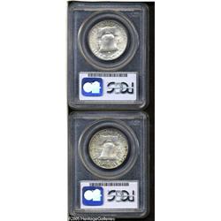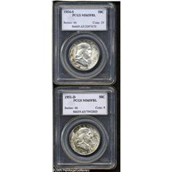 <B>1951-D 50C MS65 Full Bell Lines PCGS,</B></I> dappled golden-brown patina, a few light obverse marks; and a <B>1954-S MS65 Full Bell Lines PCGS,</B></I> russet patina hugs the obverse border, well preserved, some peripheral softness of strike.<BR><I>From The Mike Jacobson Collection.</B></I> 2 Coins Lot:8258