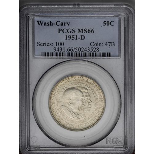 1951-D 50C Washington-Carver MS66 PCGS. Lightly abrade 1951-D[50C] Washington-Carver MS66 PCGS.