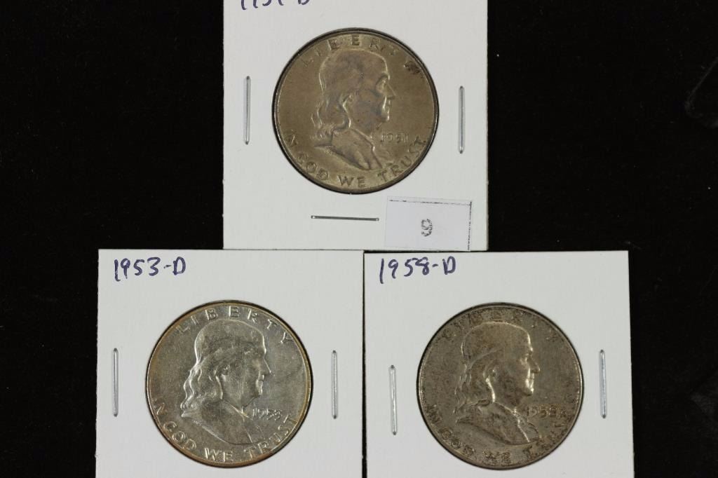 1951-D,53-D & 58-D FRANKLIN HALF DOLLARS