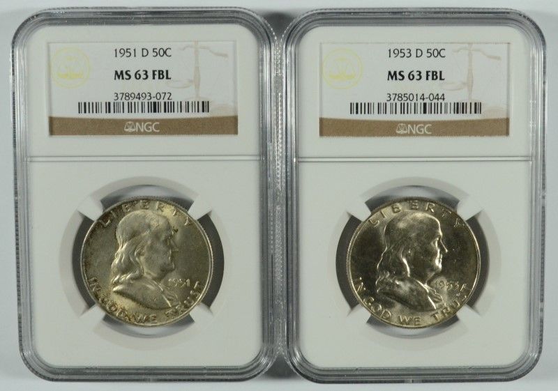 1951-D, & 53-D FRANKLIN HALF DOLLARS NGC MS-63 FBL