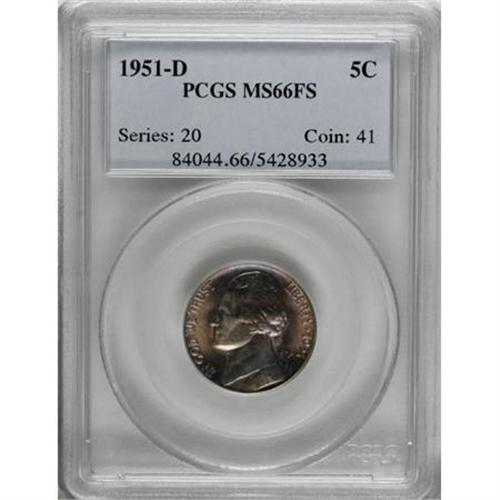 <B>1951-D 5C MS66 Full Steps PCGS.</B></I> PCGS Population (36/0). NGC Census: (3/0). (#84044)<BR><BR><b>Shipping:</b> Coins & Currency (<a target="_blank" href="http://www.heritageauctions.com/common/shipping.php">view shipping information</a>)