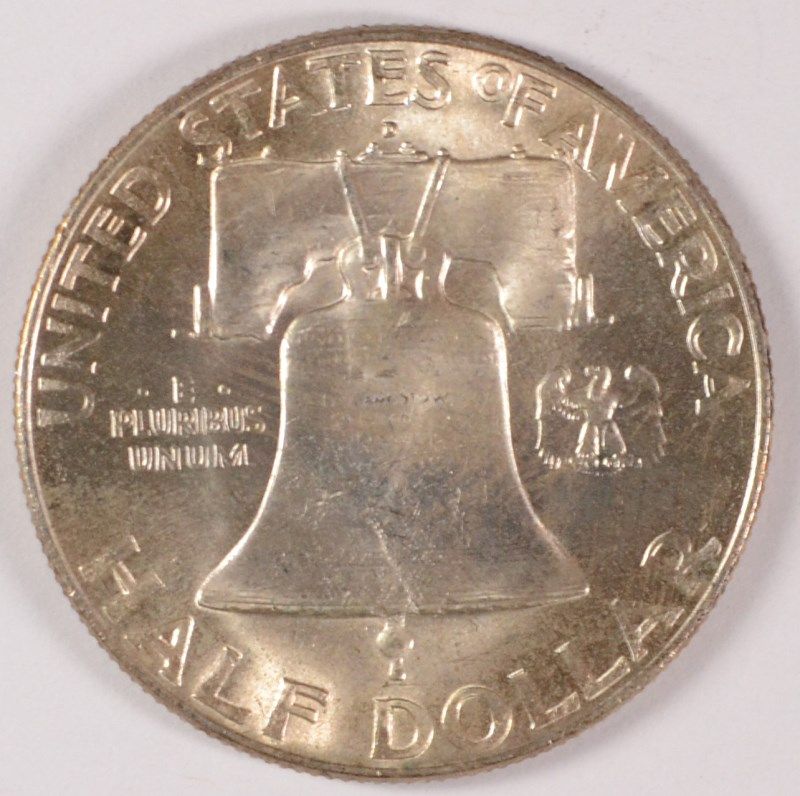1951-D FRANKLIN HALF DOLLAR, MS-65 GEM, VERY NICE COLOR OBVERSE , WHITE REVERSE