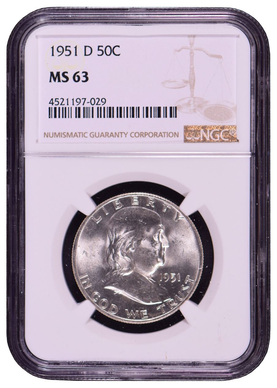One 1951-D Franklin Half Dollar Coin NGC MS63.