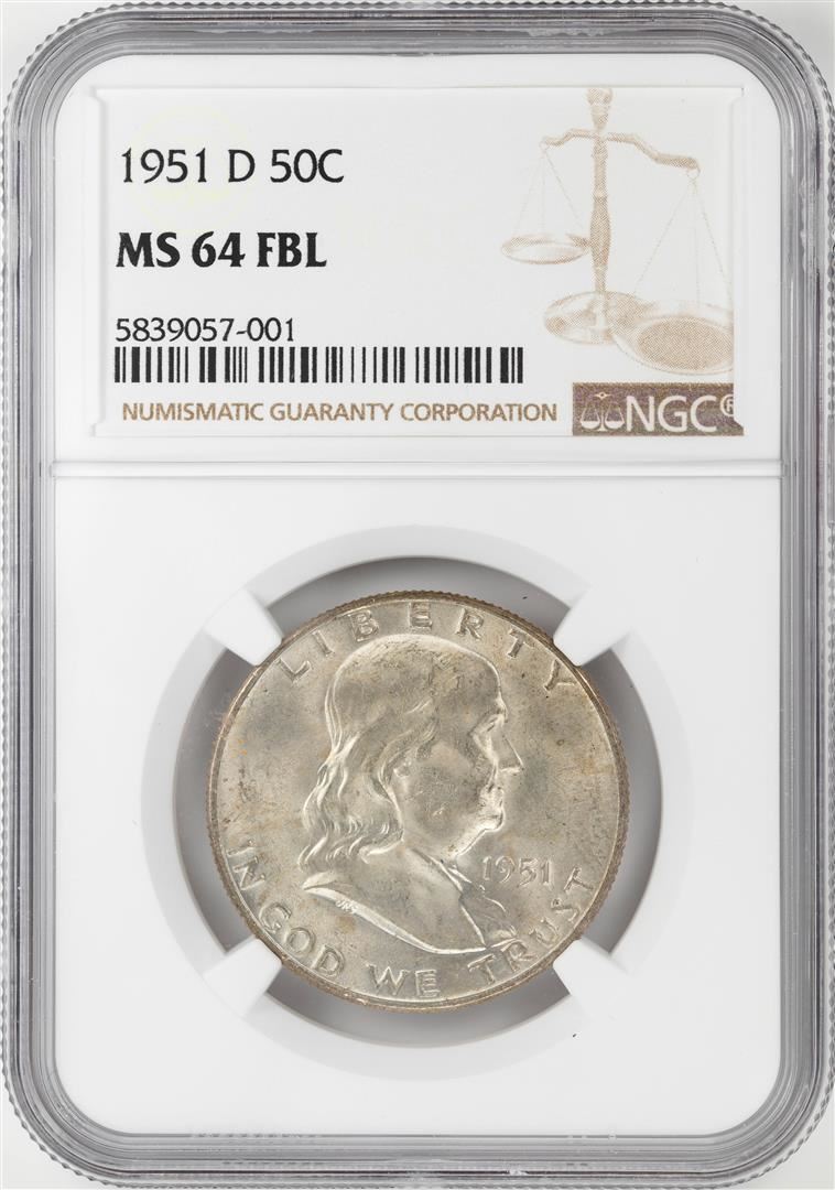 One 1951-D Franklin Half Dollar Coin NGC MS64FBL. NGC Certified.