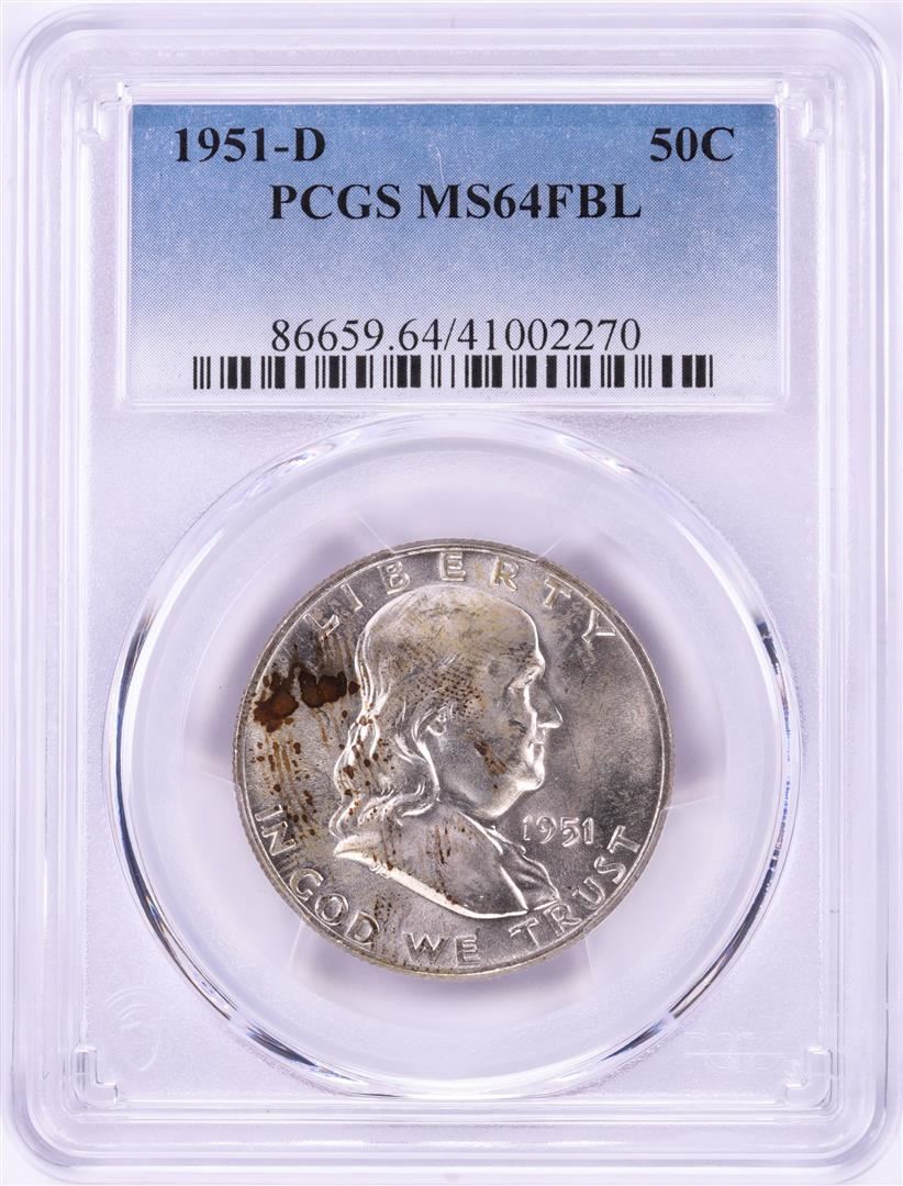 One 1951-D Franklin Half Dollar Coin PCGS MS64FBL. PCGS Graded.