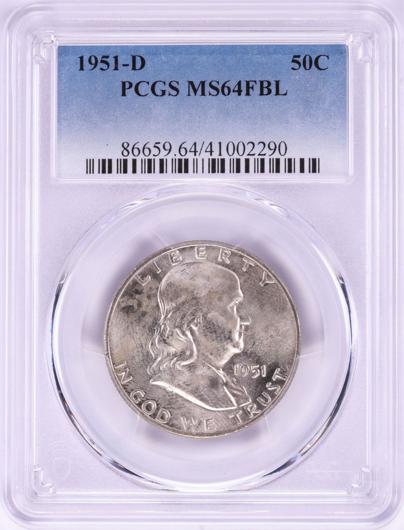 One 1951-D Franklin Half Dollar Coin PCGS MS64FBL.
